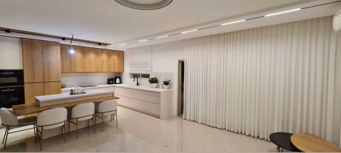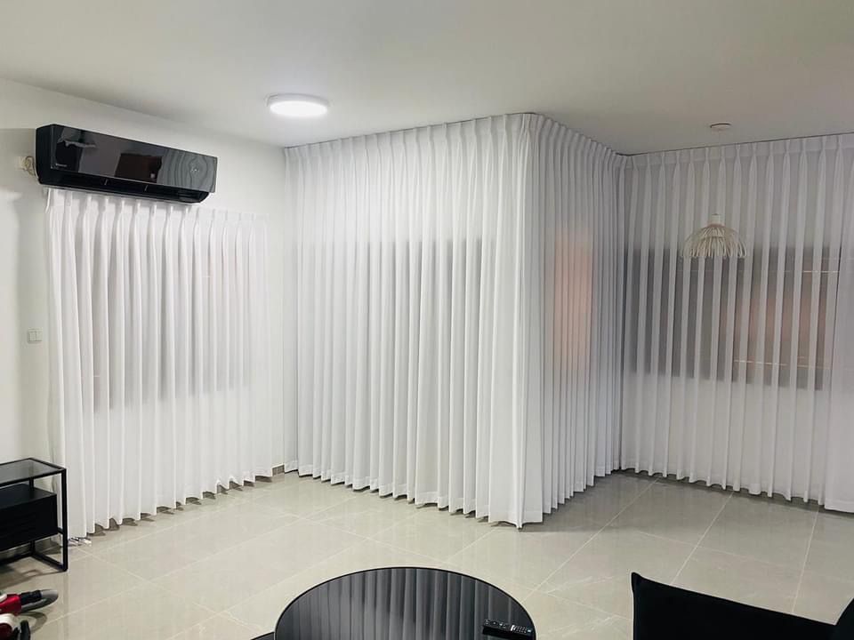 تجمع ستائر ويف سحاب بين بساطة التصميم العصري وانسيابية الموجة المنتظمة. صُممت بنظام S-Wave الذي يضمن ثبات الكسرات الرأسية من السقف حتى الأرض، مما يمنح الغرفة ارتفاعاً بصرياً وفخامة فندقية. القماش من نوع الفوييه الناعم الذي يسمح بمرور الضوء الطبيعي بنعومة مع الحفاظ على خصوصية منزلك، وهي الخيار الأمثل للمساحات الواسعة والزوايا الهندسية الصعبة.